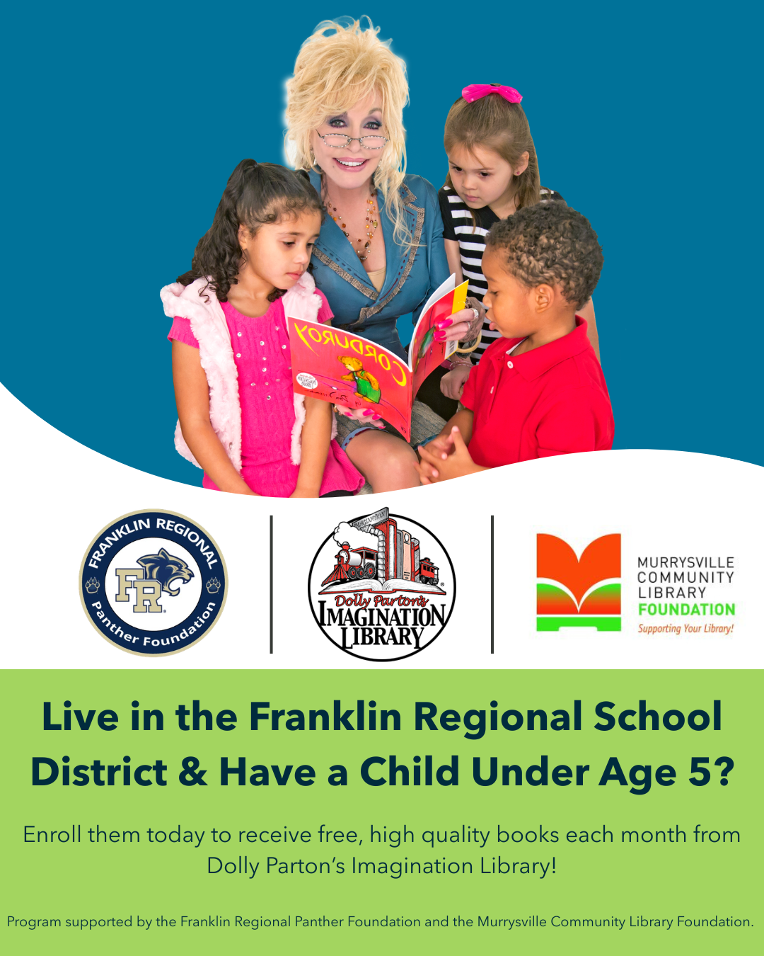 The Franklin Regional Panther Foundation and the Murrysville Community Library Foundation are partnering through Dolly Parton’s Imagination Library to provide free monthly books to children under age 5 in the Franklin Regional School District, helping foster a lifelong love of reading in our youngest community members.